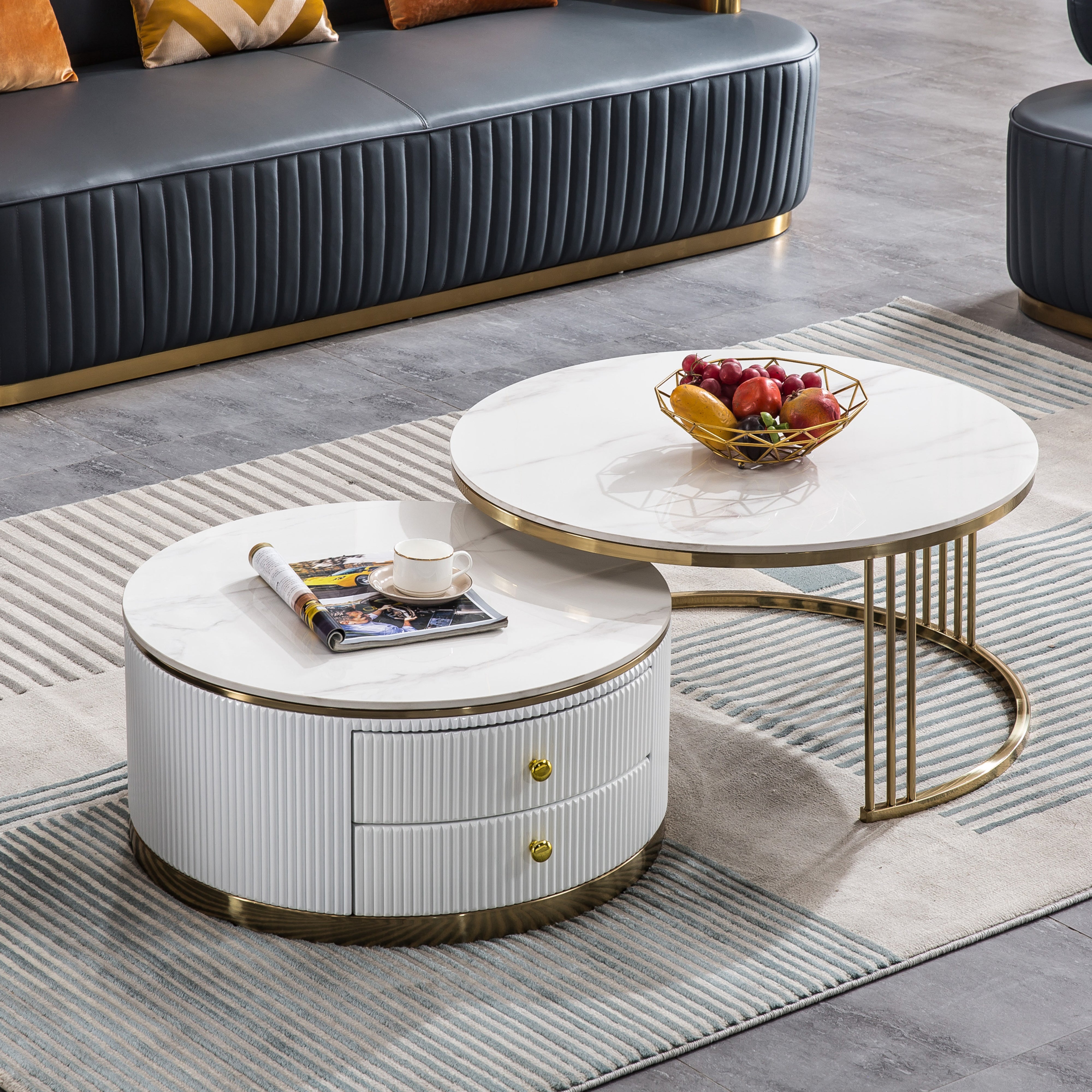 MDF/WHITE LACQUER/12MM WHITE SINTERED STONE TOP/STAINLESS STEEL BASE/GOLD FINISH