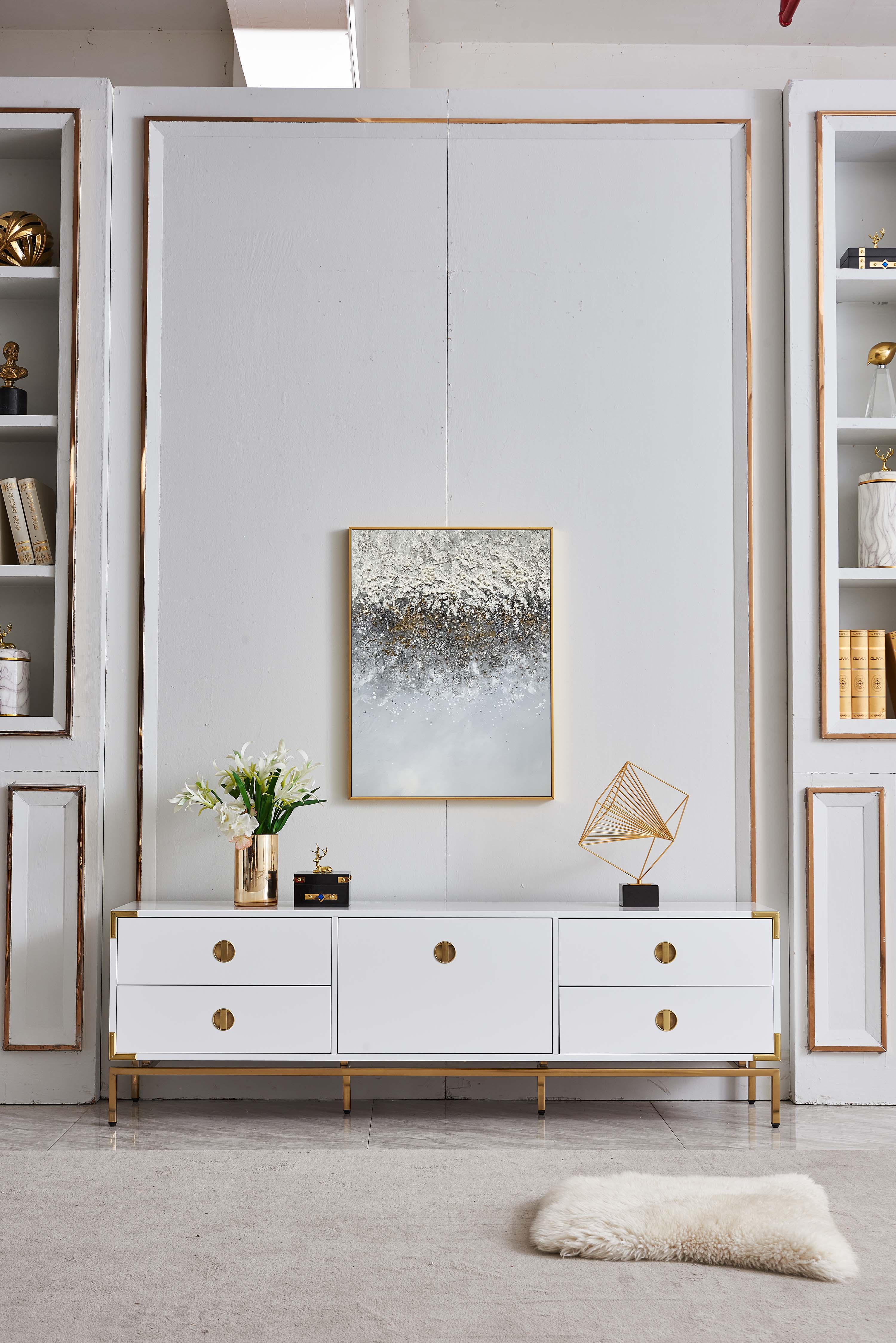 MDF/WHITE LACQUER/STAINLESS STEEL BASE/GOLD MIRRORED FINISH