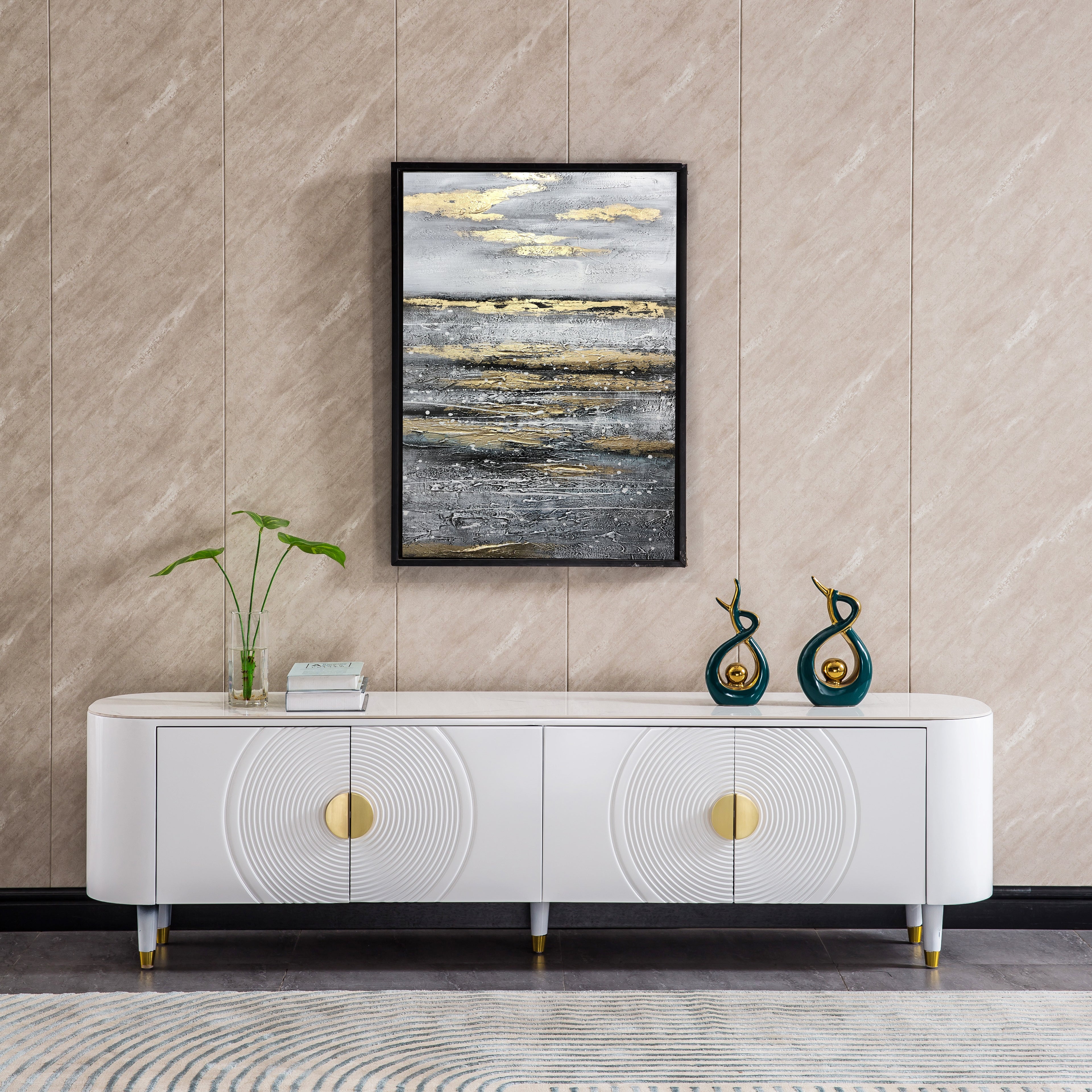 MDF/WHITE LACQUER/6MM WHITE SINTERED STONE TOP/STAINLESS STEEL BASE/GOLD FINISH