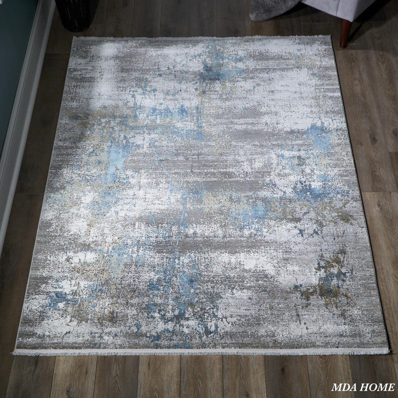This transitional designed area rug is constructed wiith 100% Viscose & Acrylic Shrink with a cotton backing, which gives the rug a handmade look. It features a low profile and a machine made construction. The subtle patterns are mixed in a transitional wash.