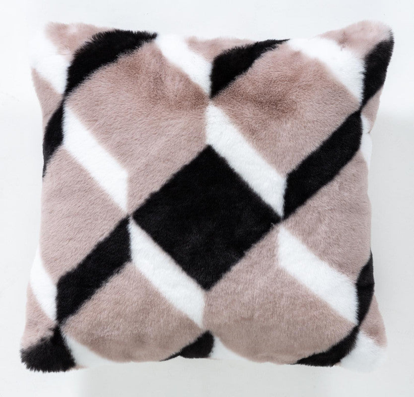 This faux rabbit fur printed pillow is constructed from 100% polyester. It features machine made construction with canvas backing. This 100% stain-proof pillow will be the perfect enhancement to your living space.