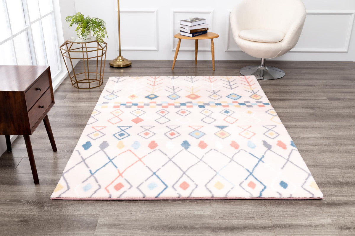 This Luxury collection polyester area rug is designed with an abstract print pattern to give it depth and character in contemporary designs. It features machine made construction and a tape edge finish. This 100% stain proof rug will be the perfect enhancement to your living space.